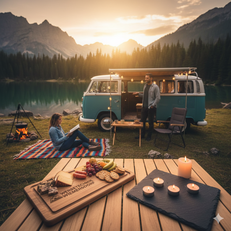 Lass uns dein Camping-Erlebnis noch persönlicher machen! Klick Dich durch unsere Ideen und lass uns wissen, wie wir Dein mobiles Zuhause oder Dein nächstes Outdoor-Event unvergesslich gestalten können. Wir freuen uns darauf, Deine Abenteuer zu gravieren und zu bedrucken!