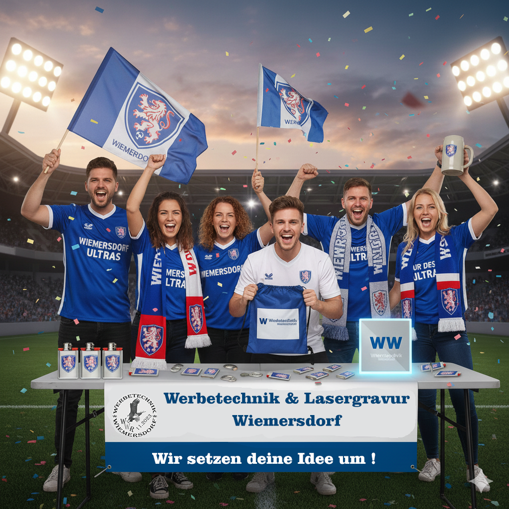 Seid ihr bereit, eurem Fanclub, eurem Team oder eurem Verein den ultimativen Ausdruck zu verleihen? Bei Werbetechnik Wiemersdorf schlägt unser Herz für echte Leidenschaft – und genau die bringen wir auf eure Fanartikel.